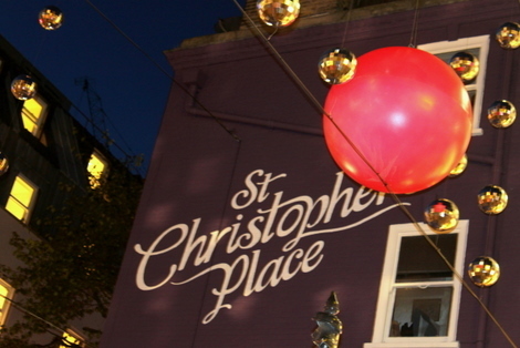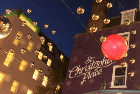 Though I didn't take many pictures of London this year since I've been very sick with a bad bout of flu I managed to snap a few unsatisfactory shots of St. Christopher Place's decorations. The theme for this year is Disco!
