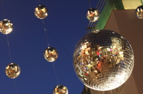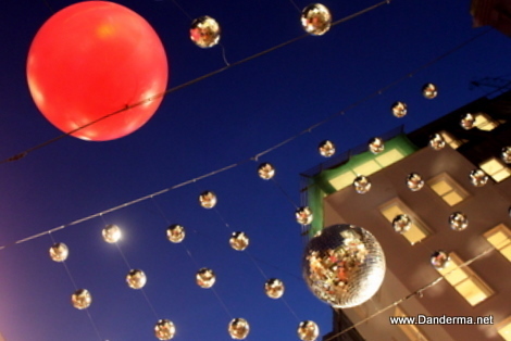 Though not very Xmasy in nature but they are very beautiful indeed! Little disco balls turning around and reflecting light all over the place! The walls, the people, other hanging orbs!