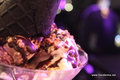 A few years back as I had just finished my tea at the Yellow Cafe in Selfridges I saw a small ice cream place that was set up right opposite the Yellow Cafe. At first glance you wouldn't think its an ice cream place as its styled in a funky gothic style with black and neon interiors with skulls.