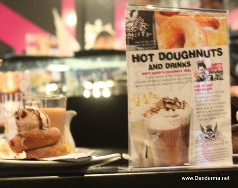 Doughnuts are real big on the menu. There is Doughnut flavored ice cream and a doughnut deal with two doughnuts topped with an ice cream scoop and a hot coffee.