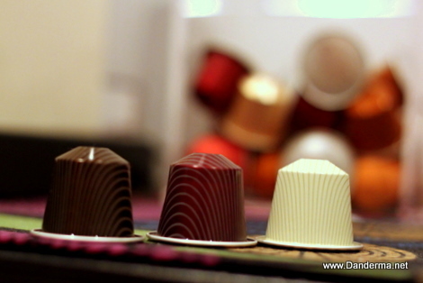 The three new flavors are: Cherry, Vanilla, and Chocolate! Yes CHOCOLATE! I'm not sure if they are sold in Kuwait or not yet but from what I've heard they aren't. If that's the case we are lucky to have them at home in our Nespresso Capsules Collection.