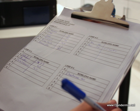 We were given a sheet of paper to sign our names in and write down our shoe sizes so they would bring the bowling shoes to us to change into them.
