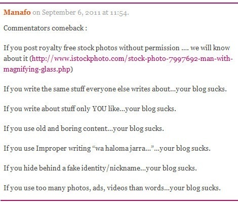 On my "Big Blogging Rant" when I complained that the fuss regarding bloggers had gone out of hand and that someone had insulted me by trying to dictate what I should write, I got this angry stalkerish comment.