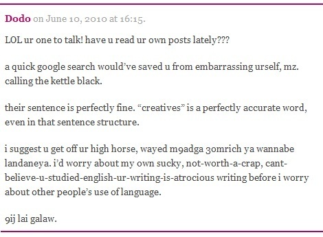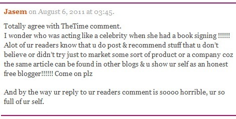This is my 2nd favorite comment because it was my first rude comment as a blogger from 2009