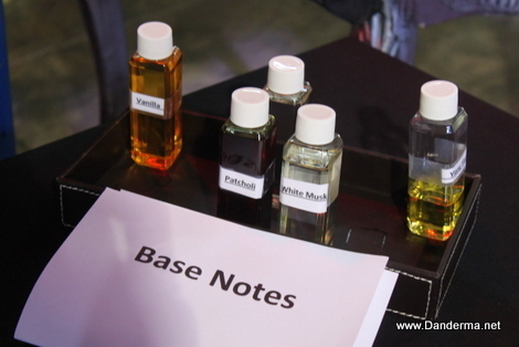The high notes of every perfume are what you smell when you first squirt the perfume on your self. Ms. Lamya had a big collection of essential perfumes or oils available for us to choose from in the high notes.