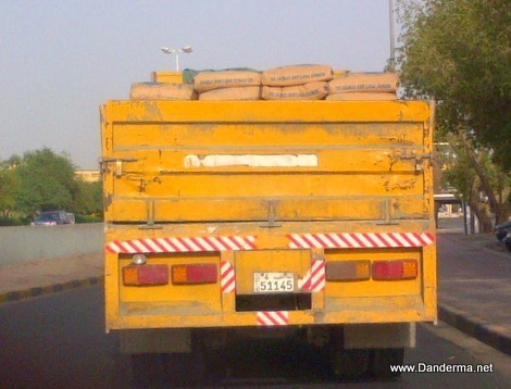 This huge truck was overloaded with cement bags. Unsecured in any manner possible and overflowing all over the edges. It was driving and swerving and I was sweating in fear and trying to get away. If one of those cement bags fly off and with the velocity of the truck, it would be very destructive especially if it hit my windshield.