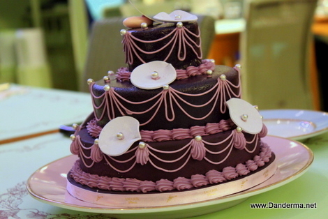However the Pièce de résistance is yet to come and it arrived in the form of a very classic small tiered purple cake, modeled after Marie Antoinette's wedding dress.