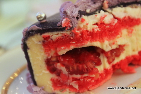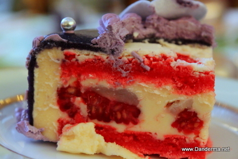 'What is that', I thought to myself! Is it just a cake? It had raspberries, something like crushed macaroons or nouga or meringue, god knows! It is not your usual boring springy sponge cake filled with icing, no no.