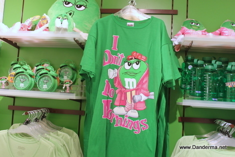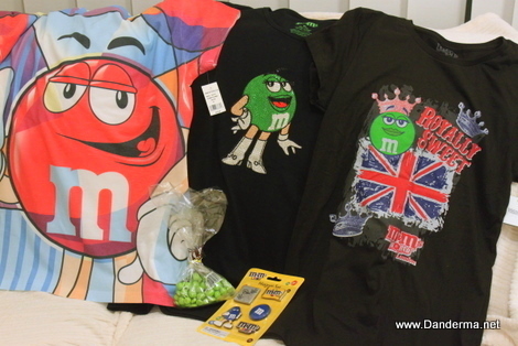 This is what I bought. Three T-Shirts, a fridge magnet set, and lime green m&m's