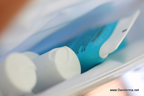 I also got myself the travel range: a small compact beauty bag with a tiny travel sized sample of each of their products: The oil, the styling cream, the shampoo, the conditioner, and the mask.