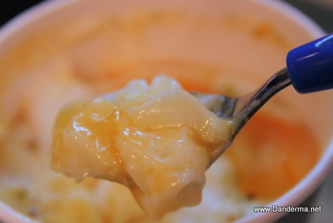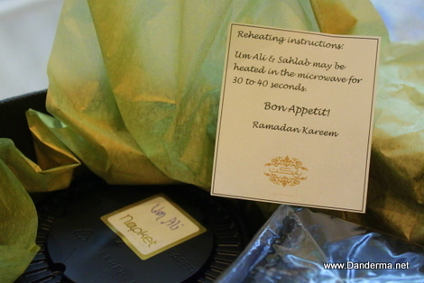 It seems like it had Napket's logo on top but it was all melted maskeena from the heat. Don't blame her. Now what else was inside? Um Ali, Sahlab, and Apricot Muhalabiya.
