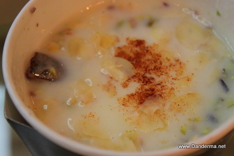 How did the Um Ali taste? Really good indeed! My mother thinks this is how Um Ali should taste like. It had no raisins which is a big turn off in our family and we were happy. My sister & I thought it had a little too many nuts though but my mom says it is supposed to be this way. Then again ana o my siblings are ed3al fa I would take my moms word for it. It is amazing!