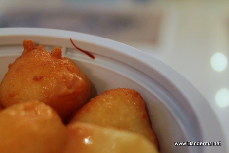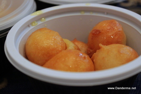 The Lgaymat are sold in a portion of 8 Lgaymat for 1.500 KD. I ordered five cups and they had them delivered at our home at 6 PM. My mother said that when they arrived they were tightly shut in the plastic cups and they were getting a bit soggy so she opened the lids and took them off to air them a bit.