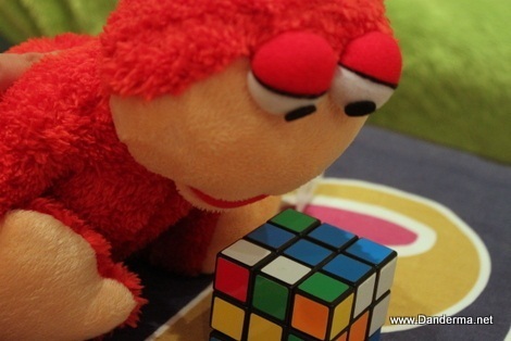 He wasn't so happy with the Rubik's cube though, unlike his uncle -my brother- who can solve the thing, or most of it anyways.