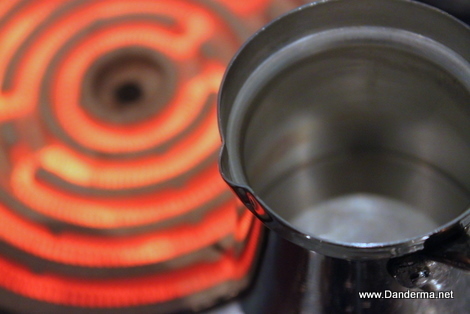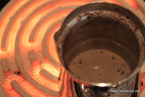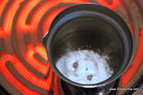 As soon as the water boil you must drop your spoonful of coffee beans.