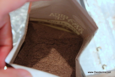 As you wait for the water to heat up you take your coffee beans and with Gloria Jean's coffee measure you take one spoon.