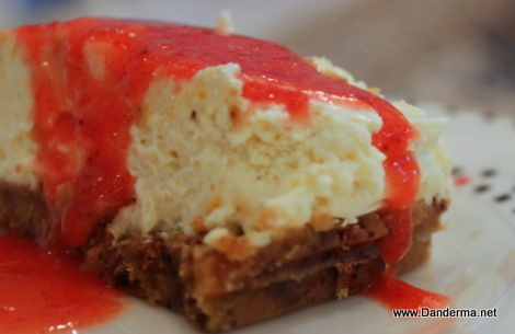 Accompanied by a slice of my homemade strawberry cheesecake (recipe).