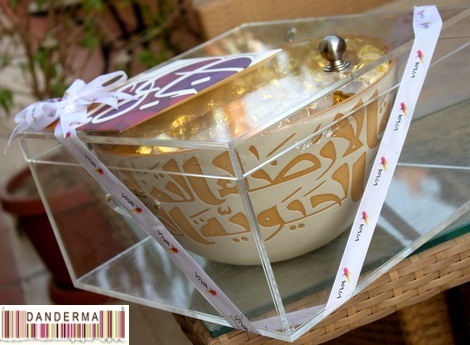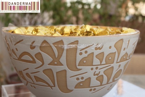 The bowl is gorgous, big ceramic with Arabic engravings all around it.