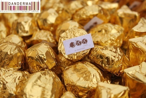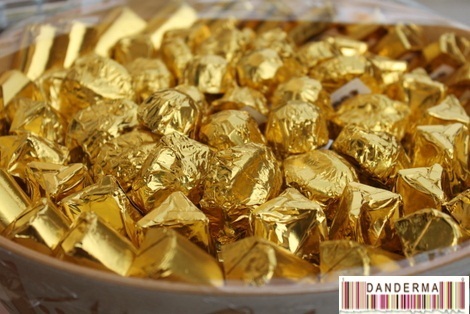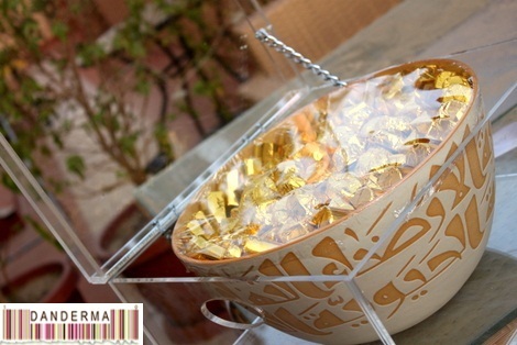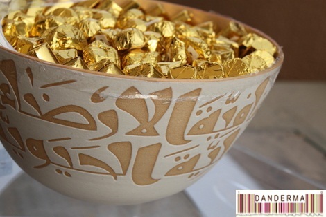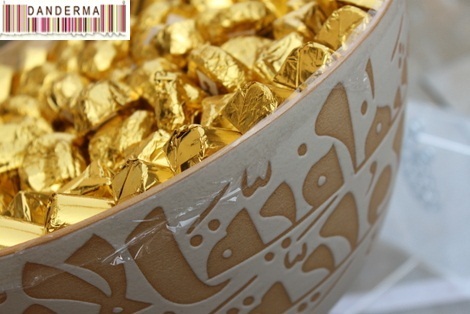 The lovely bowl is filled to the brim with golden wrapped chocolate pieces, the result of gold in the bowl is breathtaking. Like finding Ali Baba’s treasure.