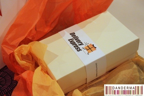 The other day I received a white bag from Delivery Express, inside was lots of orange and yellow tissue paper and a nice cream box.