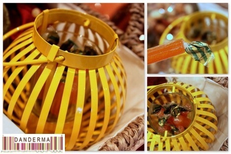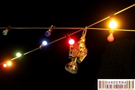 Also a pretty small yellow lantern filled with pieces of Qamar Deen -soft apricot candy pieces-.