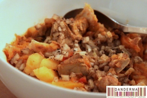 How was it? Well, it comes in a bowl with pleanty of meat chunks, not a bone in sight, and tender pumpkin pieces. It also has a sprinkle of diced onions on it. My husband thinks that its very good indeed but if they lose the onion sprinkles and have it on a flat plate it would be perfect.