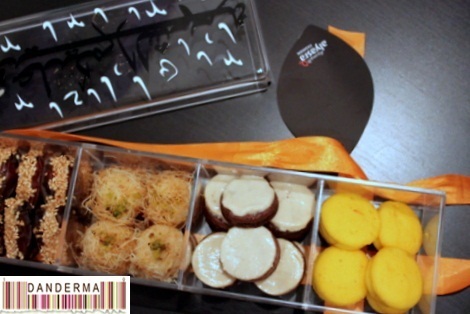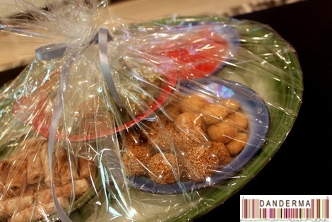 The tray was big and beautifully wrapped, filled with little plates filled with traditional Kuwaiti sweets like Zalabiya, Darabeel, Samsamiya, Ghraiba, Mini Qer9 3qaili cakes, and Traditional wrapped sweets like Qamar Deen.