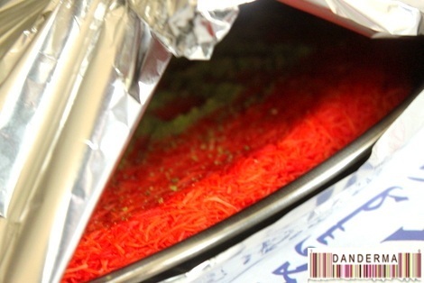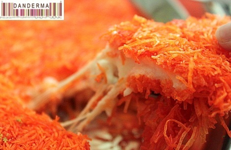 Peeking shyly back at me from beneath the foil wrapper was a bright orange colored thing that could mean only one thing: Kunafa!