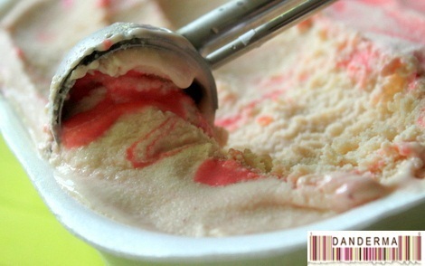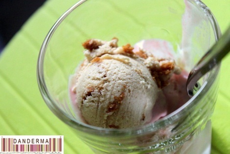 One of our stray cats (post), Lulu, smelled the gelato through the open window and jumped on the window sill. I heard her mew just in time while taking this pots pictures to scream and slam the window in her face as she was ready to bounce inside the house and on the ice creams! She went to stand on the floor and gave me the look above which clearly says what’s your problem! Sorry Lulu, Danderma doesn’t share ice cream!