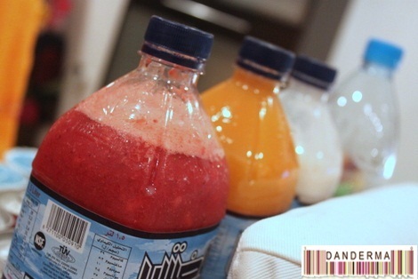 Dear Ansam brought over 3 water bottles filled with juices (strawberry, mango, and banana milk) to make the cocktail juice like the olden days! Akramch Allah Ansam :*