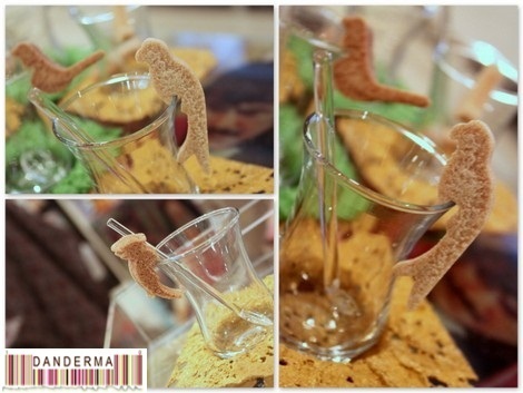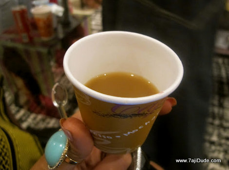 Dear Noon brought over my favorite coffee sweets of all time, the mini brownie like bites from sugar and spice. I eat those like I eat popcorn, they are so addictive! Sadly all my pictures were badly shaken so I had to steal the one picture I could find of them from Jacquies. It’s also the only picture I had of the utensils we used, mistmatched and placed in the cocktail paper cup.