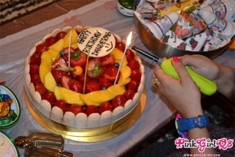 I was in for a nice surprise too. You see, Ansam brought over a cake and when we opened it it said “Happy Birthday Danderma” even though my birthday was 6 days away! She insisted on lighting it and celebrating an early birthday for me. Here she is lighting up the candles in Pink’s picture.