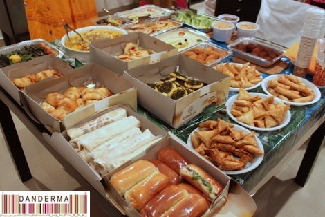 We also had platters of cheese samboosa, vegetable samboosa, cheese spring rolls, plastic bowls of hot nakhi and bajela. 80′s much?