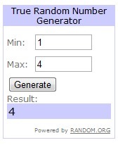 Now one of the four who will NOT win is chosen by Random.org and its answer number…