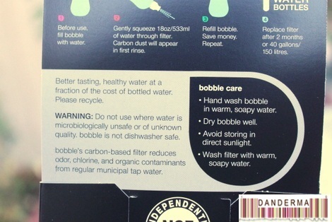 The Bobble filter is a carbon based filter. Frankly I don’t know what that means as I’m not a chemist, but its supposed to remove all odors and chlorine or other chemicals from the tap water while you drink it.