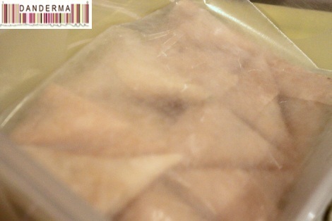 Now that everything is ready, its time to wrap the samboosas. I put on a dvd -The ring- and sat on the dining table watching and wrapping. First I take out a few sheets of samboosa dough at a time, covering the remaining sheets with a damp towel so it doesn’t dry up.
