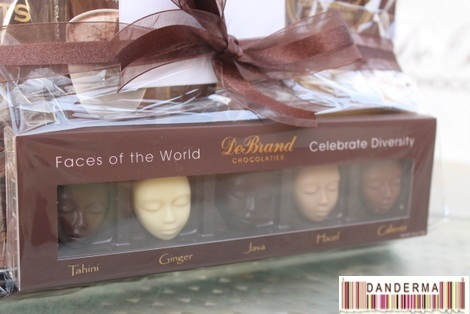 A box of faces of the world chocolate, each face a different shade and a different flavor, as diverse as the human population! Cute!
