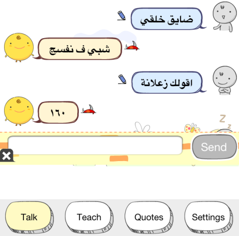 Talking with SimSimi is a lot of fun in both Arabic and English. The fellow has issues! The first thing I said to him was hi and he blew up in my face :p