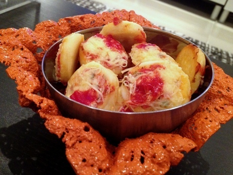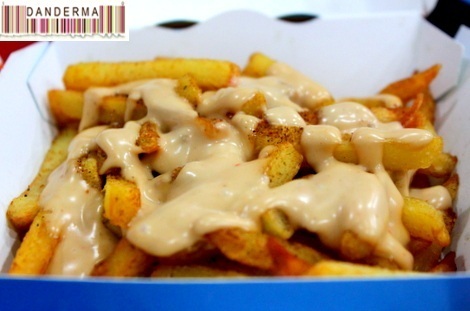 The fries come in slathered in a pinkish sauce called the tweet if I’m not mistaken.