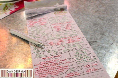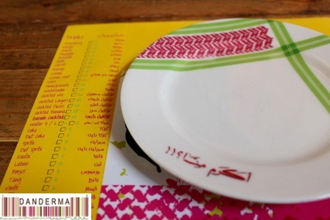 You order by ticking what you want from the menu above. They have a vast selection of familiar dishes we love: Hummus, Fool, Falafel, Eggs, Fatayer, Saj, Koshari, Shawerma, etc. The juices are ordered by ticking the juice boxes in the place mats.
