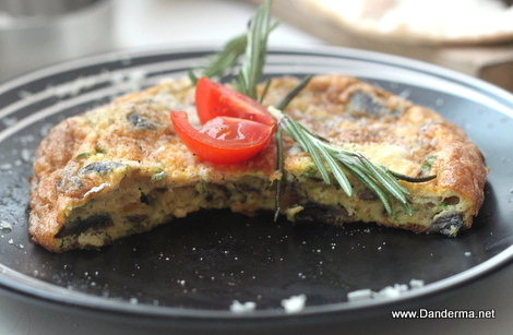 The first thing that came baked out of the oven is the Rosemary, mushroom, and parmesan omelet.