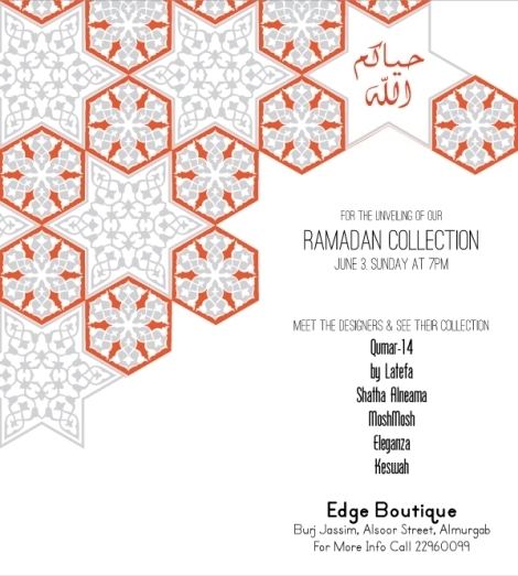 My friend the designer behind Qumar 14 collection has is showcasing her Ramadan collection in collaboration with Edges Boutique in an upcoming event going taking place… tonight!