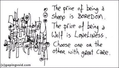 Yep, to be creative you need to be some kind of a lone wolf. And choose not to be sheep. Are you really ready for it? The point of Hugh McLeod is very well made – you need to choose one or the other.