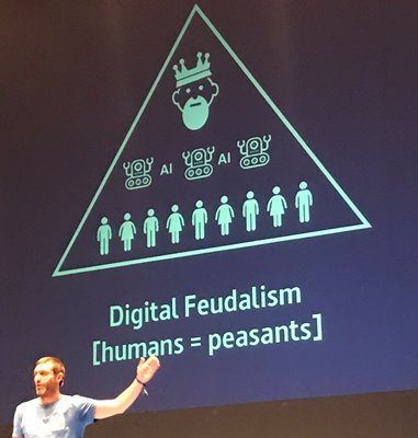 “Instead of farm produce, today the new asset class is data—created by us, but captured by digital landlords such as social-media companies, search engines, online retailers, governments, and banks. “Surfing the internet” has become “serfing the internet,” with users giving up intimate details of their lives for the internet lordships to aggregate, expropriate, and monetize. We, as the serfs, only get left with a few lousy cabbages.“