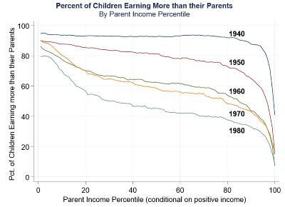 “He has pioneered an approach that uses newly available sources of government data to show how American families fare across generations, revealing striking patterns of upward mobility and stagnation. In one early study, he showed that children born in 1940 had a 90 percent chance of earning more than their parents, but for children born four decades later, that chance had fallen to 50 percent, a toss of a coin” And he has shown that to a “surprising degree, people’s financial prospects depend on where they happen to grow up“.