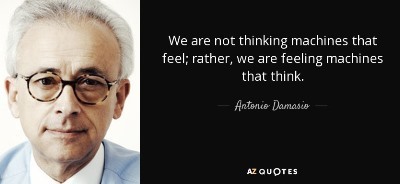 I like this quote from Antonio Damasio: “We are not necessarily thinking machines. We are feeling machines that think”.