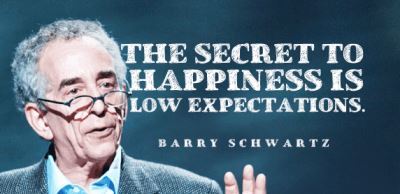 In the excellent TED talk by Barry Schwartz about the Paradox of Choice, he reminds us that modern society and the large choice in everything is increasing substantially our expectations, creating unhappiness (and depression) as a result. And there he reminds us that “the secret to happiness is: low expectations“.