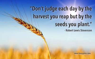 I like this beautiful quote by Robert Louis Stevenson: “Don’t judge each day by the harvest you reap but by the seeds that you plant.”