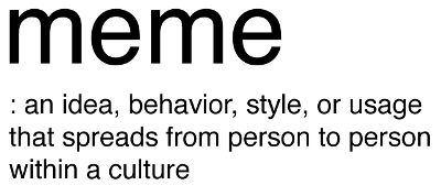 According to Wikipedia a meme is “an idea, behavior, or style that spreads by means of imitation from person to person within a culture and often carries symbolic meaning representing a particular phenomenon or theme.”