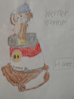 And then there are the days when he volunteers it without me even prodding a little. Like he did earlier this week about the story he was writing. And boy howdy did he spill the deets. (I'm informed no one says "deets." Minus 2 cred points.) It was fiction writing, and he was allowed to go nuts. And nuts he went.